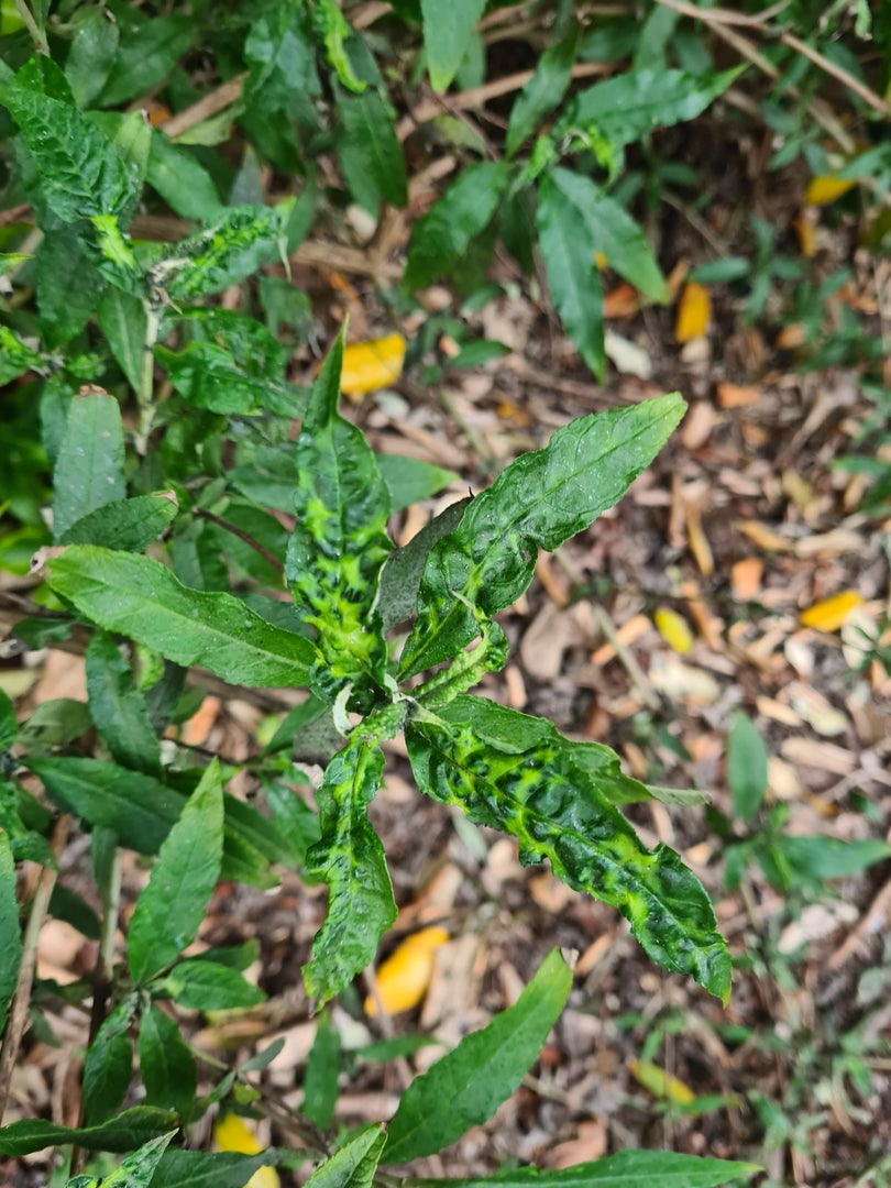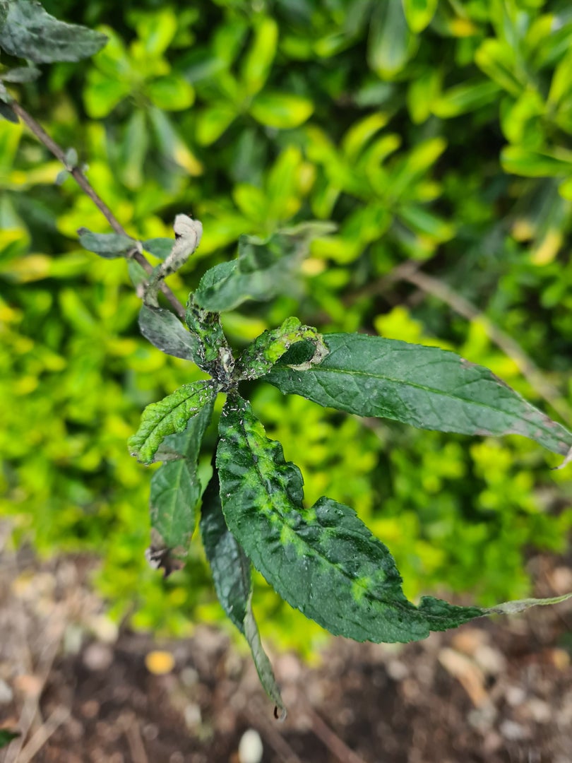 Buddleja leaves affected by aphids show unusual puckering and discolouration, caused by aphids feeding on the undersides of the leaves. Over time, the damage curls the leaf and can create pale patches that look similar to disease symptoms caused by a virus. However, this leaf damage is likely to be caused by the melon-cotton aphid, Aphis gossypii.