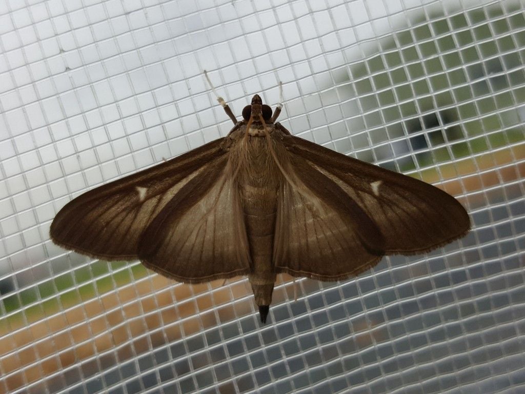 - The adult moth usually has white wings with a faintly iridescent brown border, although the wings can be completely brown or clear. The moth has a wingspan of around 4 cm (1录 in)