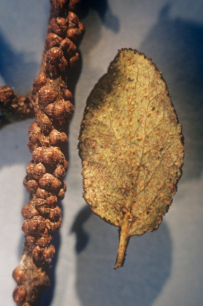 Plants affected - Many woody plants, including Ceanothus, Cotoneaster, Cytisus, Weigela, Wisteria, roses, plums and bush and cane fruits. In glasshouses grape vines, peaches and nectarines may be affected