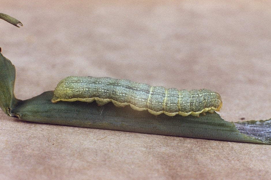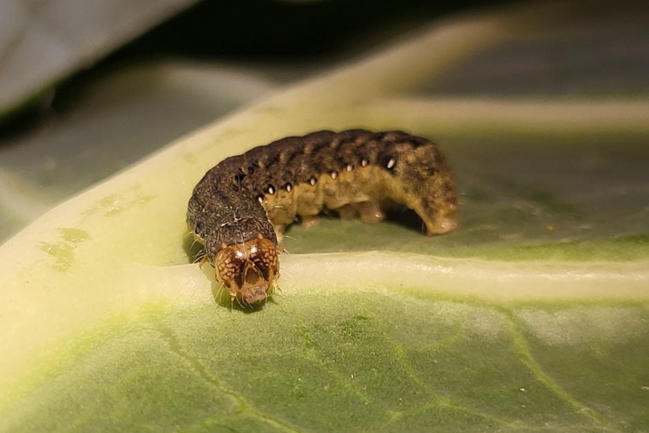 - Diamond back moth caterpillars can feed extensively on leaves, causing a characteristic windowpane effect. They are green and reach about 1 cm long when fully grown and can be very numerous. They will often drop from the plant when disturbed. This species may become more of a problem in the UK as the climate changes