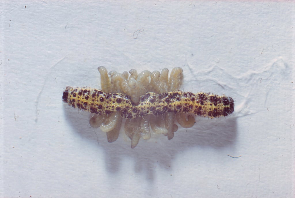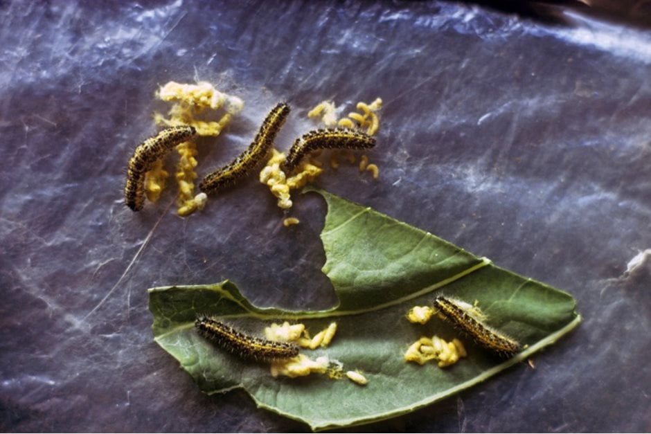 - Where possible tolerate populations as cabbage caterpillars are food for many other creatures including parasitoid and social wasps and birds. The butterfly caterpillars are often infected with the parasitoid wasp Cotesia glomerata, the larvae of this wasp burst out of the caterpillar and spin yellow cocoons