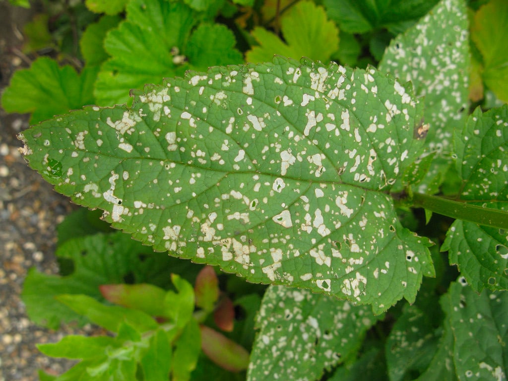 - Several species of weevil (Cionus and Cleopus species) partly eat leaves which can lead to foliage drying up, particularly at the shoot tips. Flower buds can also be affected