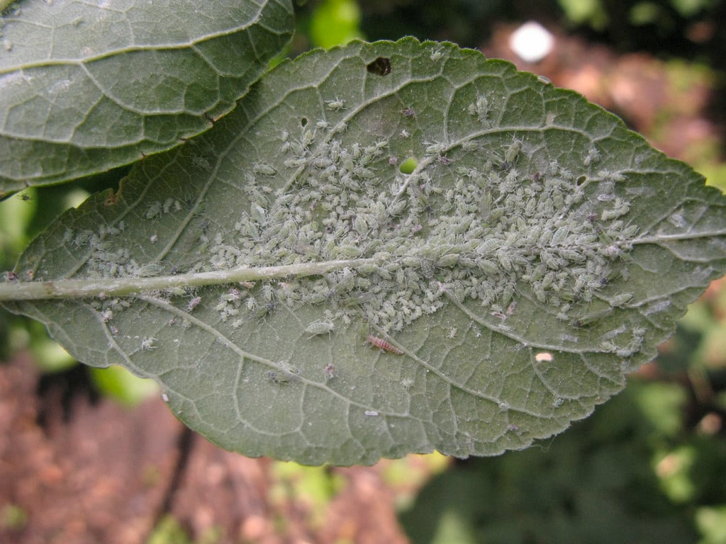 - Rosy apple aphid : Summer host = plantains (Plantago spp.). Leaves fruit in June-July