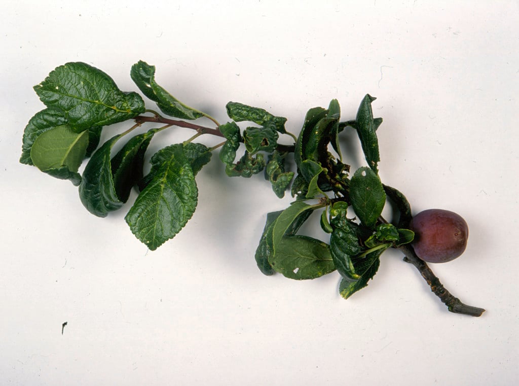 - Plum leaf-curling aphid : Summer host = many herbaceous plants. Leaves fruit in May-early June