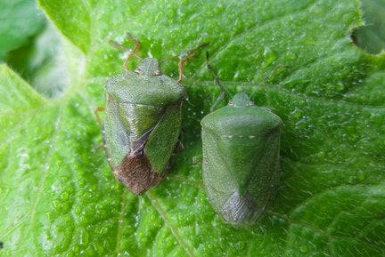 With these insects you are less likely to spot signs of their presence and more likely to encounter the adult insects or their nymphs. The two species of green shieldbug found in Britain can be difficult to distinguish.
