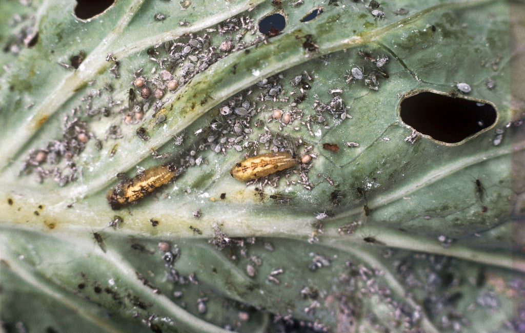 About 40% of hoverfly species found in Britain feed on aphids as larvae. They are very effective predators and contribute to the natural balance in a garden. These include many of the common species such as the marmalade hoverfly (Episyrphus balteatus), a species that migrates in huge numbers from Europe in the summer. Predatory larvae are mobile and rely on chemical senses and touch to locate prey. Once located they pierce the aphids with their mouth hooks and suck out the body contents.