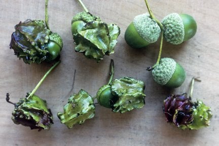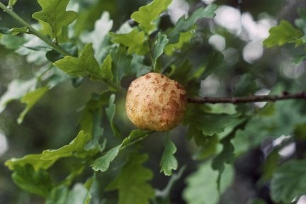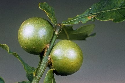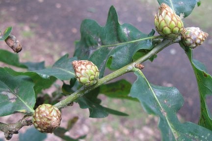 Oaks, especially the species Quercus robur and Q. petraea are the host plants for more than 70 species of cynipidgall wasp. It is the larval stage of these insects that induce the plant to produce abnormal growths, known as galls, that enclose the developing larvae. These galls are part of the a healthy oak tree supports.