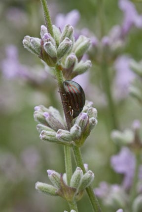 Rosemary beetle eats the foliage and flowers of various aromatic plants, such as rosemary, lavender , sage, thyme and some other related plants. In most circumstances the beetle can be accepted as part of the biodiversity a healthy garden supports, as it does not eat enough to harm healthy plants. Rosemary beetle has spread rapidly since first being found breeding in central London in the late 1990s: it is now widespread throughout England and Wales, and is established in Scotland, present in Northern Ireland and may be established in parts of the Republic of Ireland.