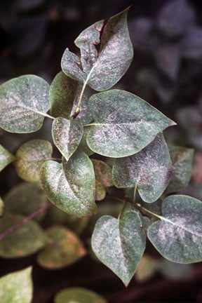 Privet thrips (Dendrothrips ornatus) The adults are brownish-black with a banded appearance of white and dark markings on their wings. They feed on the leaves of privet and lilac during May to October, resulting in the gradual development of silvery-brown foliage by late summer, and may cause some premature defoliation.