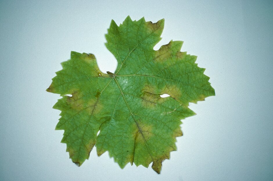 - Downy mildew on the leaves – caused by the fungus-like organism Plasmopara viticola