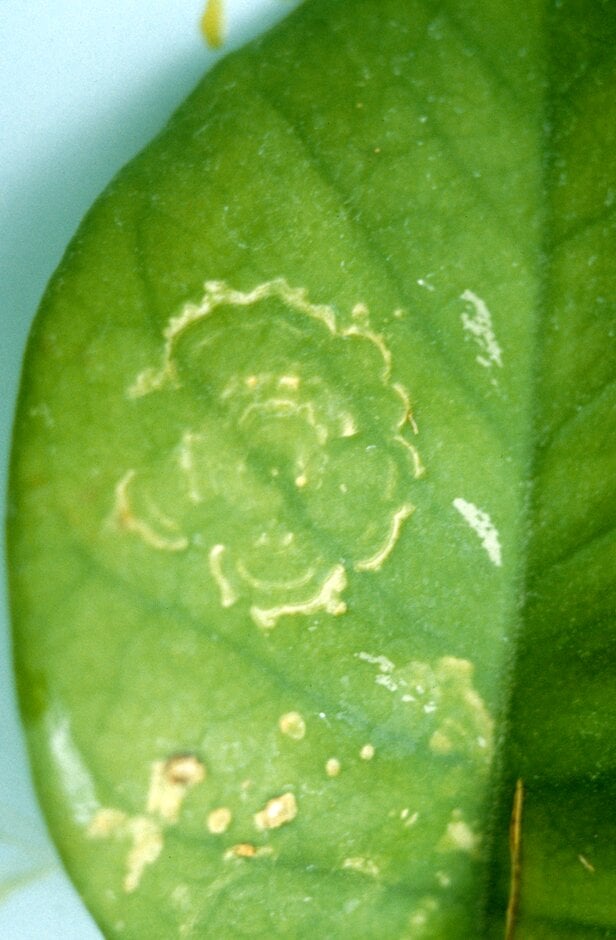 - Yellow or brown lines, streaks or zig-zag patterns on the leaves