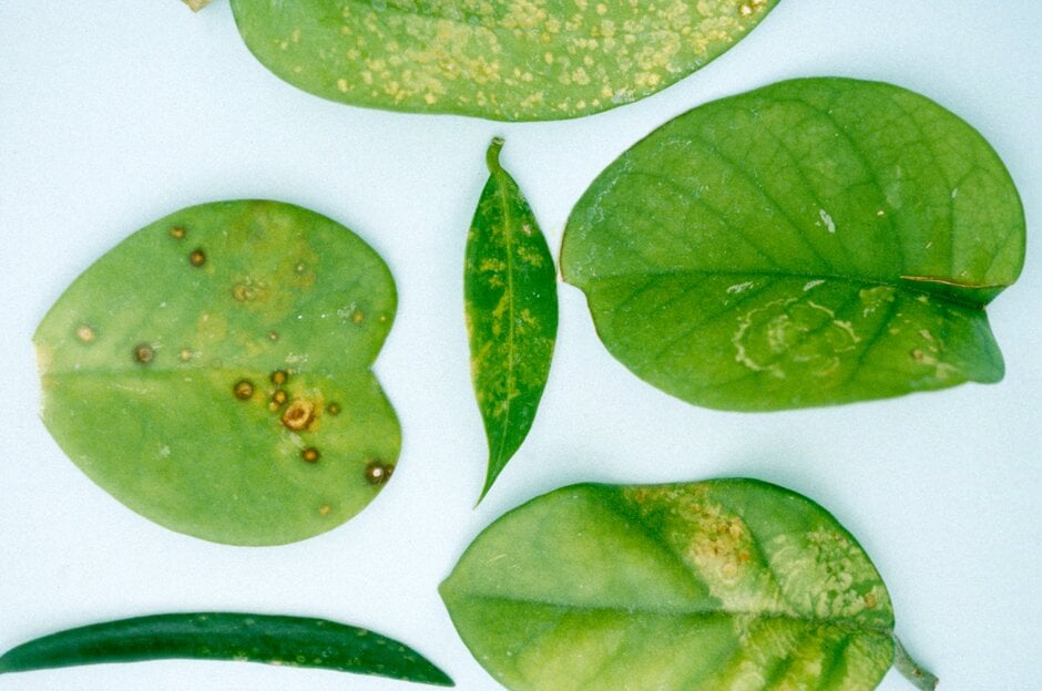 - Mottles (blotches) or mosaics (smaller, more regular patterns like those of a tile mosaic) on the leaves - these can be various colours