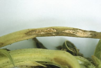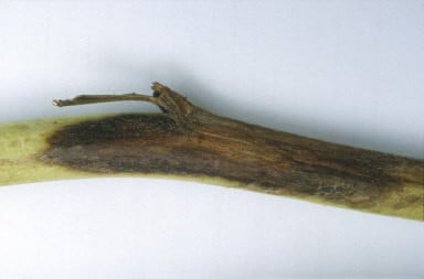 - The growth of stems and flower stalks may become distorted, or they may collapse completely, due to points of weakness caused by the lesions