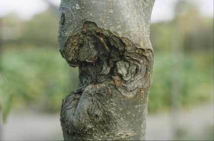 Question: My tree has developed lumpy outgrowths on the bark, which are covered with a white, fluffy substance. Is this a disease?