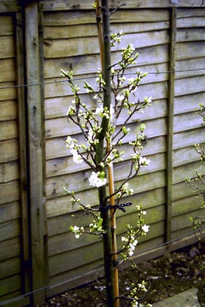 Plum cordons are excellent for the small garden. They are simply single-stemmed fruit trees with short sideshoots (fruiting spurs).
