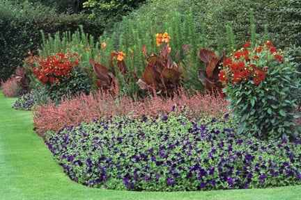 Half-hardy or tender sub-tropical plants such as banana plants, cannas and palms often form a focal point or centrepiece for bedding schemes. can be useful for creating patterns (see below).