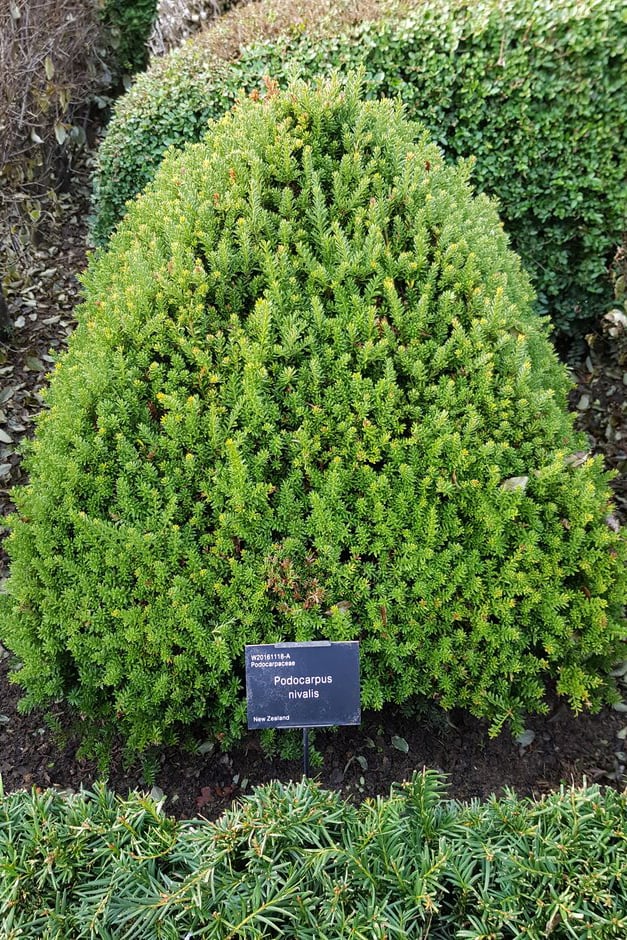 Podocarpus (yellowwood) – good variety of foliage colours. Hardy and pest- and disease-resistant. A little slow to establish, but responds well to clipping and tolerates most soils and part shade as well as sun