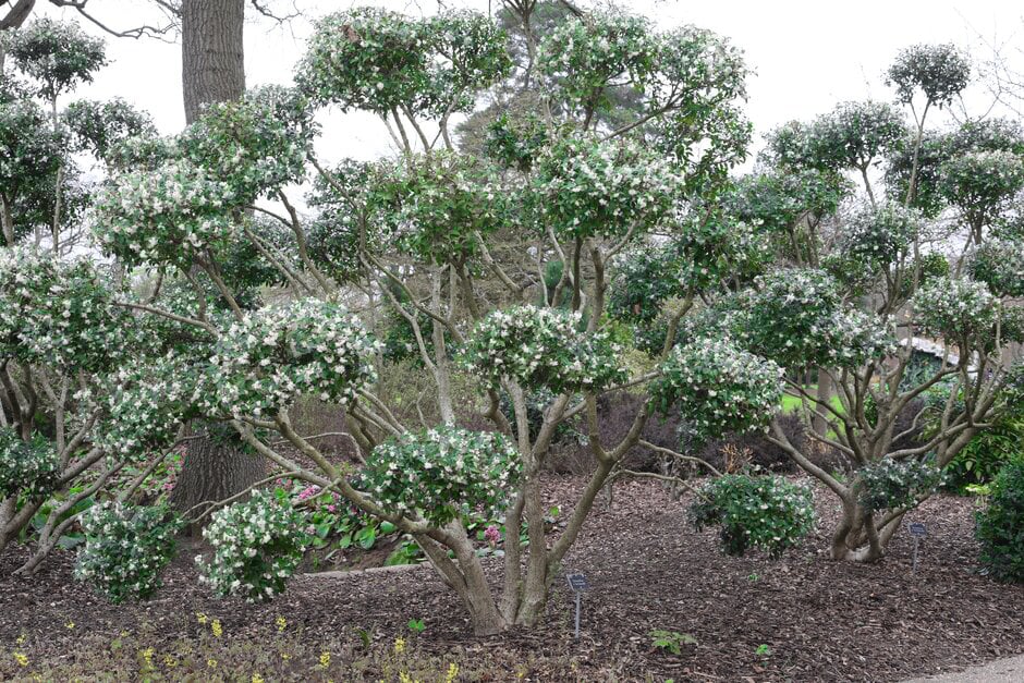 Myrtus (myrtle) – for sheltered areas of the UK, in a sunny position and well-drained soil. Pest- and disease-resistant.