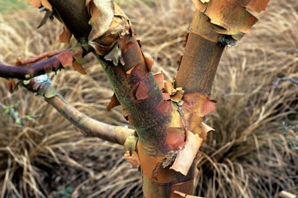Acer griseum AGM: flaking cinnamon-brown . Height and spread 8-10m (26-33ft)