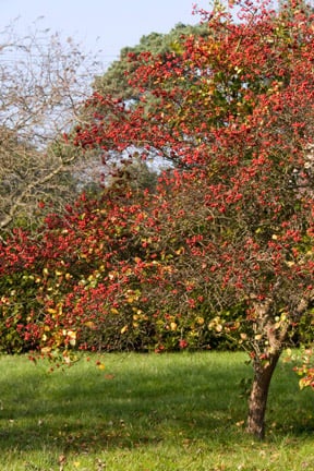 Crataegus × lavalleei 'Carrierei' AGM: orange-red fruits persisting through winter. Height and spread 7m (23ft)