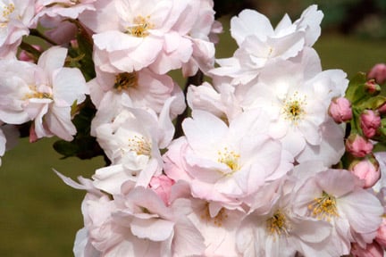 P. 'Pink Perfection' AGM: rosy-pink double flowers in drooping clusters, mid-late spring. Height and spread 6m (20ft)