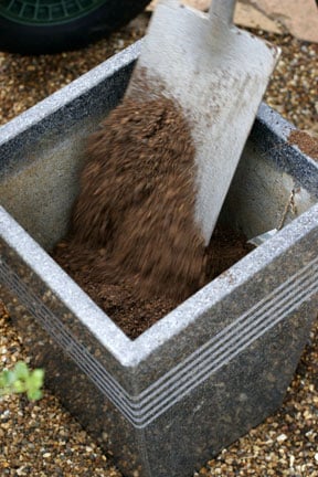 Peat is used in the original recipe, but peat substitute may also be used and is environmentally preferable. Try to source a brand which says it is peat-free such as Melcourt Sylvagrow Peat-Free John Innes. As most peat substitutes are much less acid than peat, less ground chalk is needed to raise the of the mix.