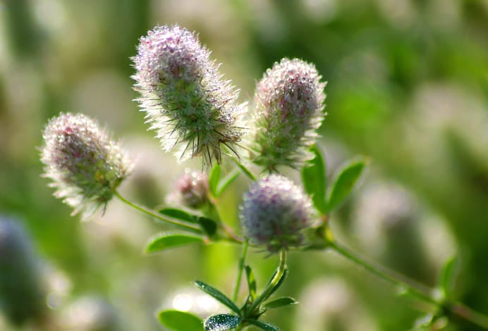 White clover, red clover, hare’s foot clover, lesser trefoil, slender trefoil, bird’s foot trefoil and black medick are native to the UK