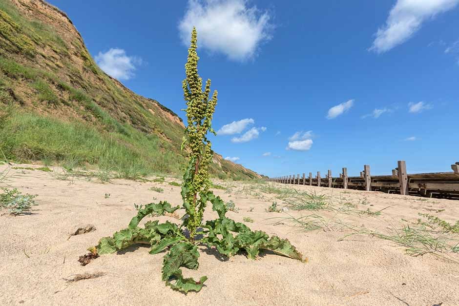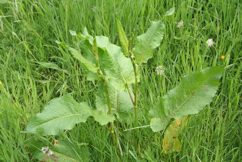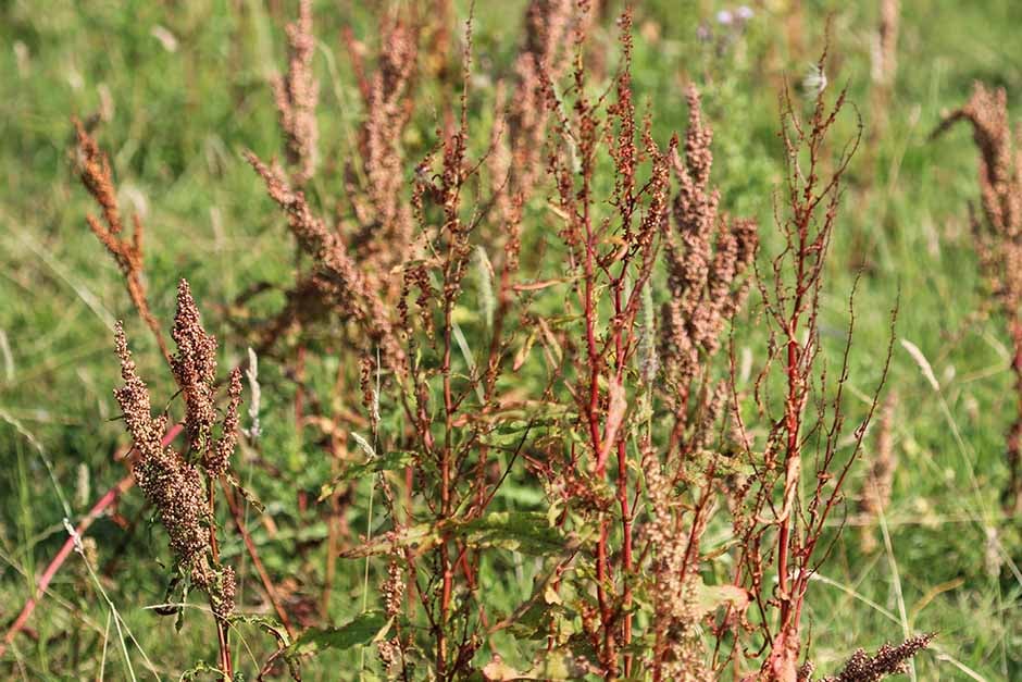 Broad-leaved dock and curled dock are both native to the UK and widespread