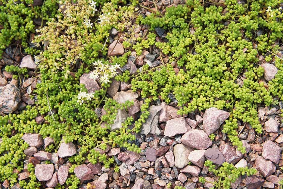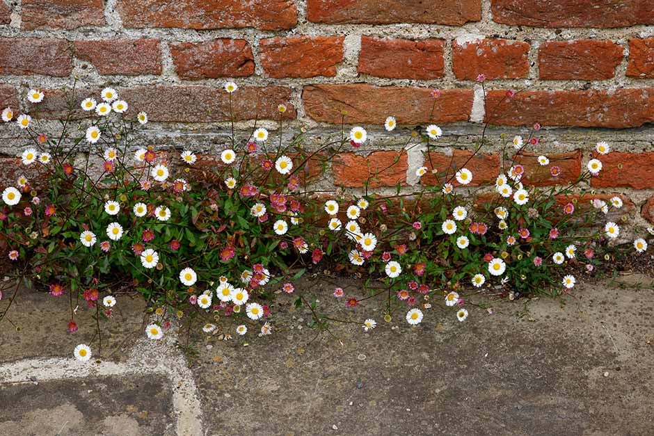 - Embrace plant growth – plant low-growing ornamental plants , like Corsican mint , stonecrop sedum and creeping Jenny , into gaps in paving to hide and outcompete weeds. Even narrow joints can be planted up, by removing pieces of loose mortar, filling the gap with topsoil and sprinkling on the seed of creeping thyme or Mexican fleabane .